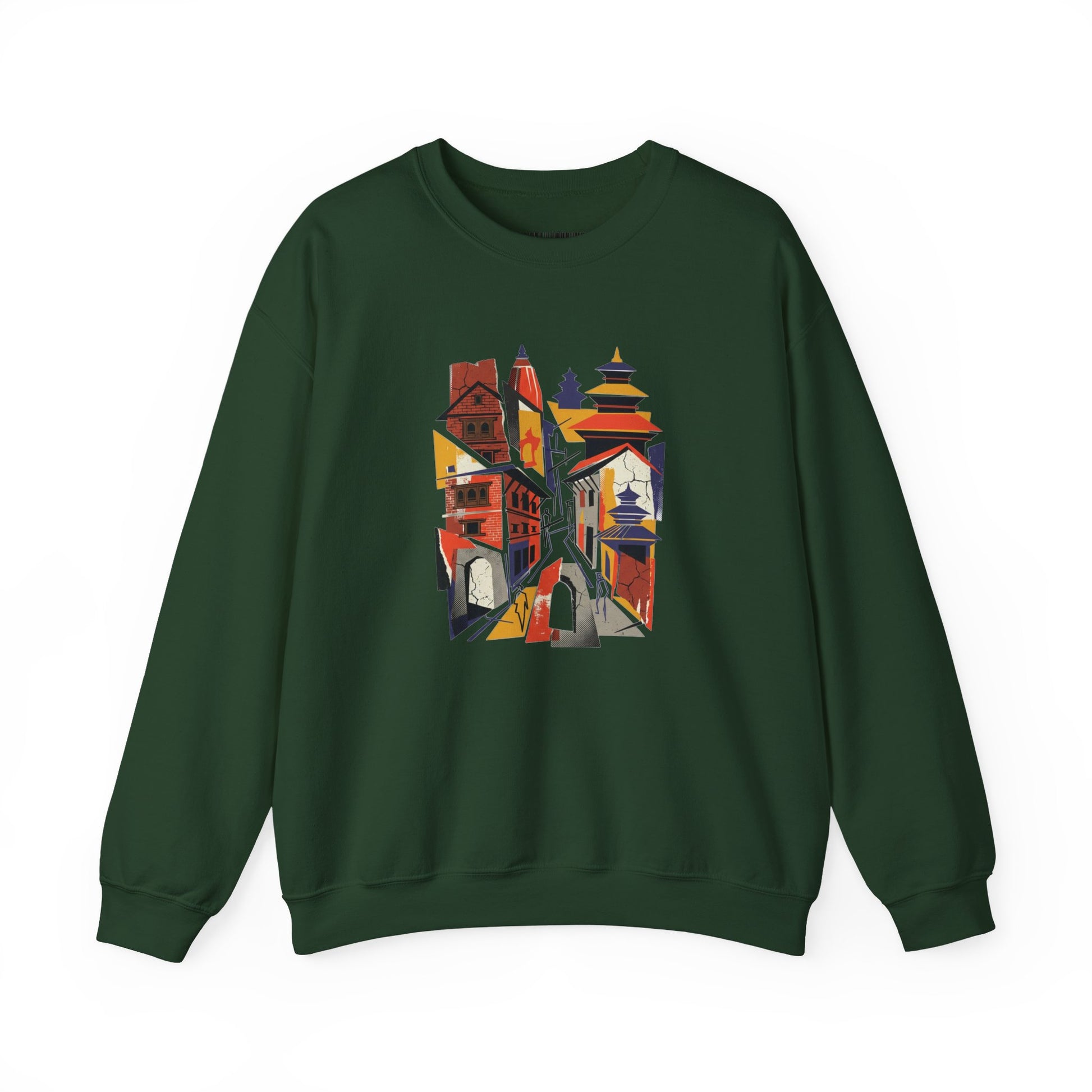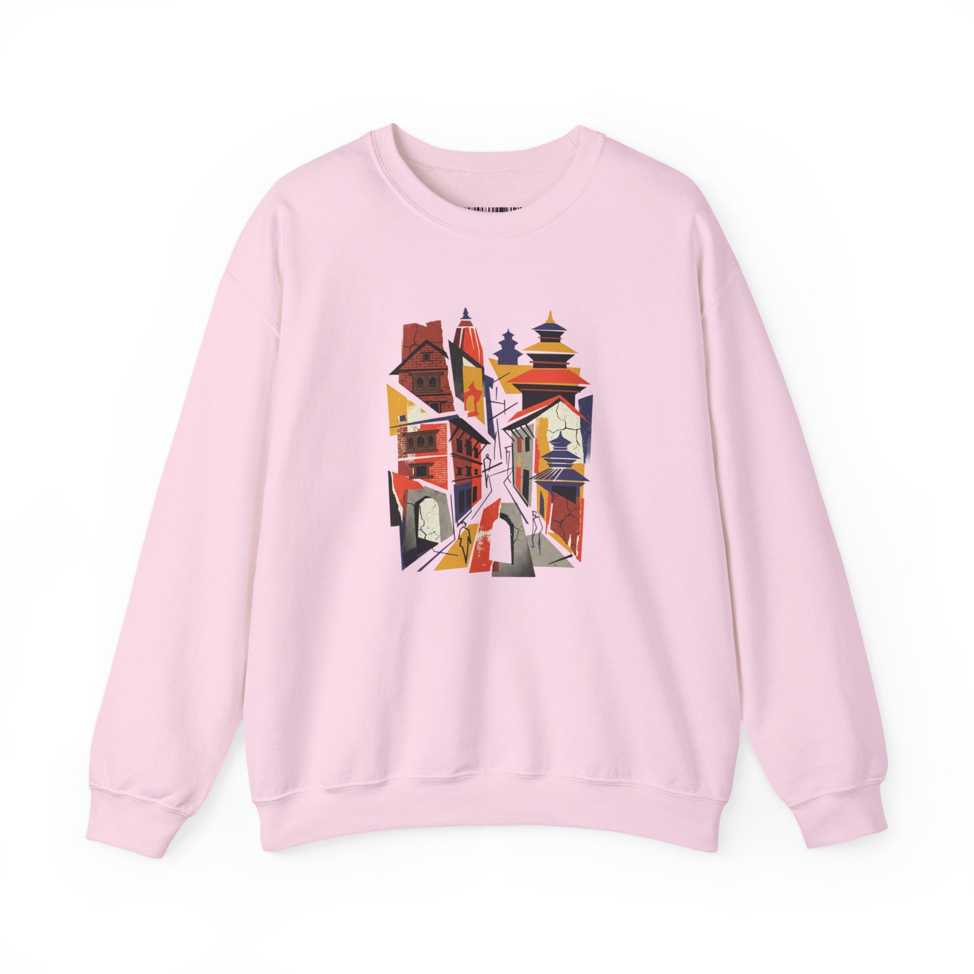 Architectural Cityscape Crewneck Sweatshirt — Abstract Urban Alley Art