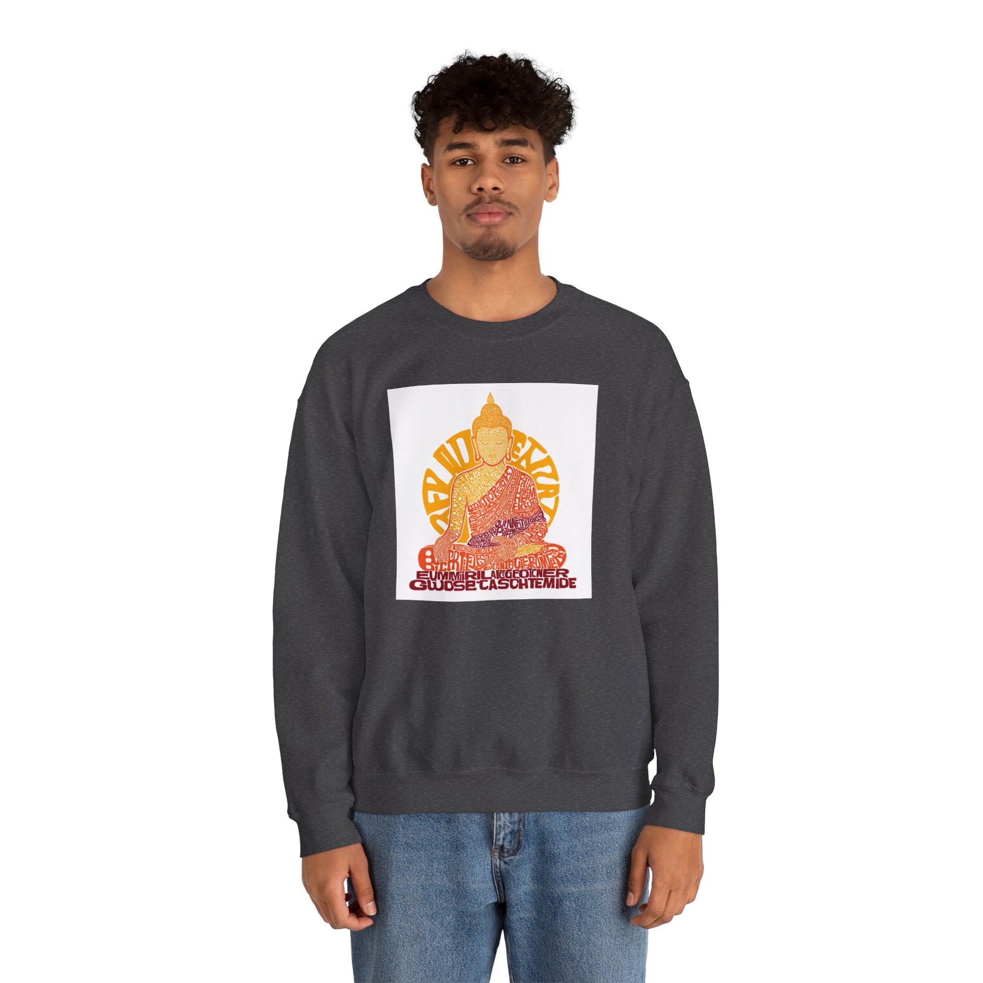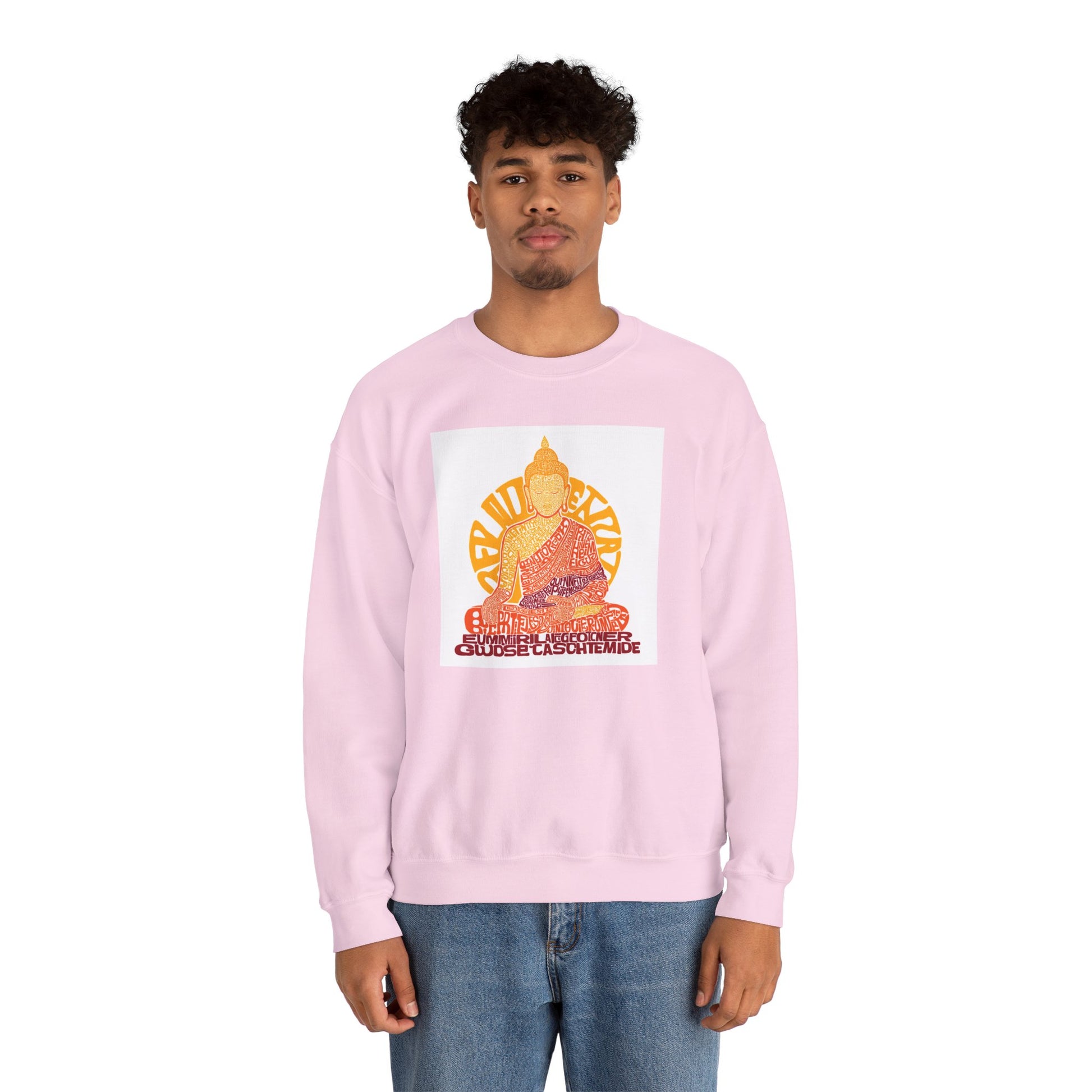 A soft, roomy crewneck that wears like a warm exhale. The design centers on a serene, meditative figure in sunlit golds and warm coral—printed with fine DTG detail—so it reads like a quiet emblem on a clean white canvas. The sweatshirt’s medium-weight 50/50 cotton-poly blend and classic fit make it an easy layer for slow mornings, long flights, or evening walks after a day of work. Subtle details—ribbed collar, double-needle stitching at stress points, and a tear-away label—keep the focus on comfort and longevity. This is the kind of sweatshirt you reach for when you want calm and clarity wrapped around you: gentle on the skin, responsibly sourced, and built to last.