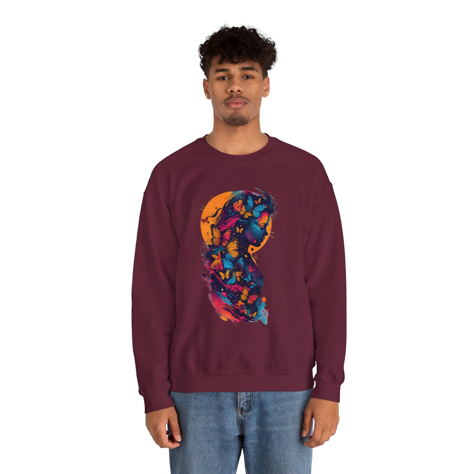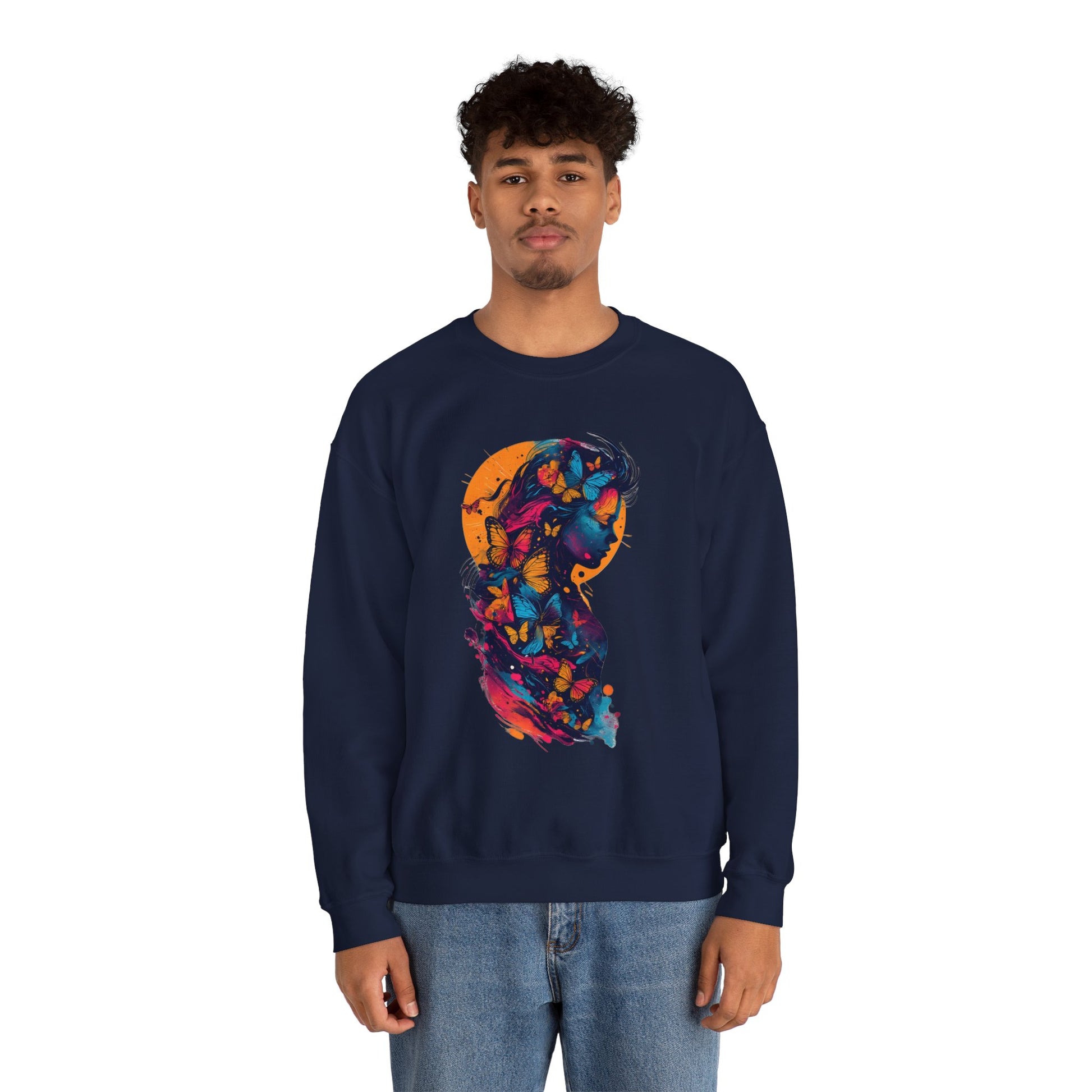 Butterfly Silhouette Crewneck Sweatshirt — Colorful Butterfly Profile Graphic
