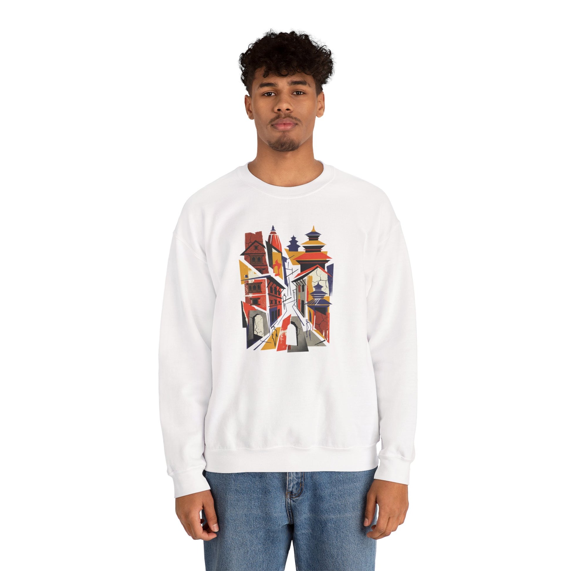 Crewneck Sweatshirt — Abstract Cityscape Graphic (Colorful Architectural Illustration)