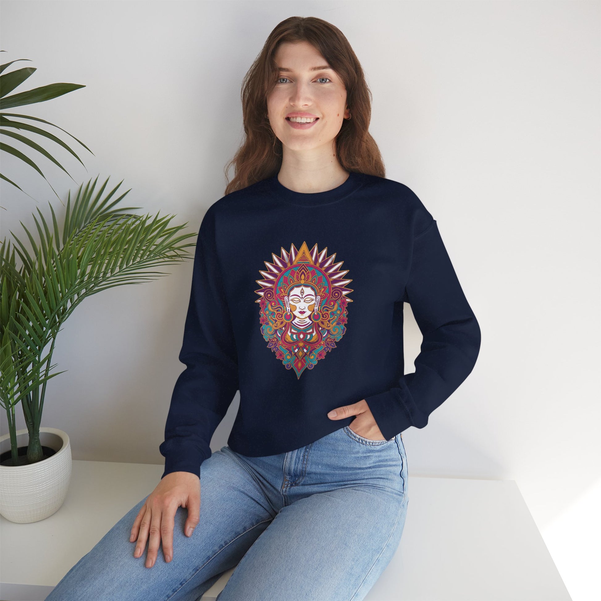 Crewneck Sweatshirt — Colorful Mandala Goddess Graphic