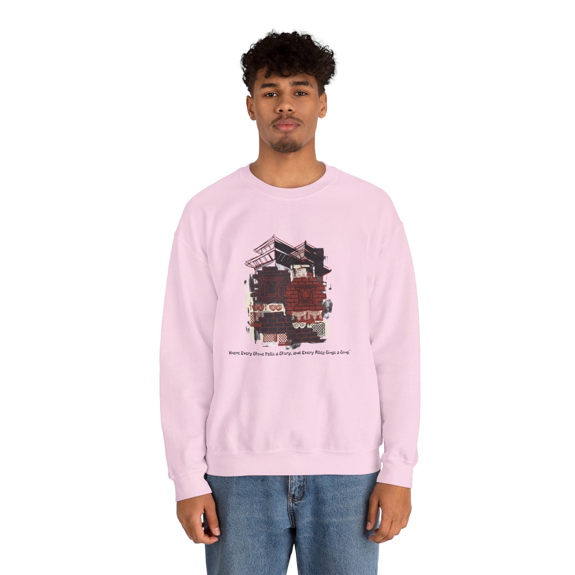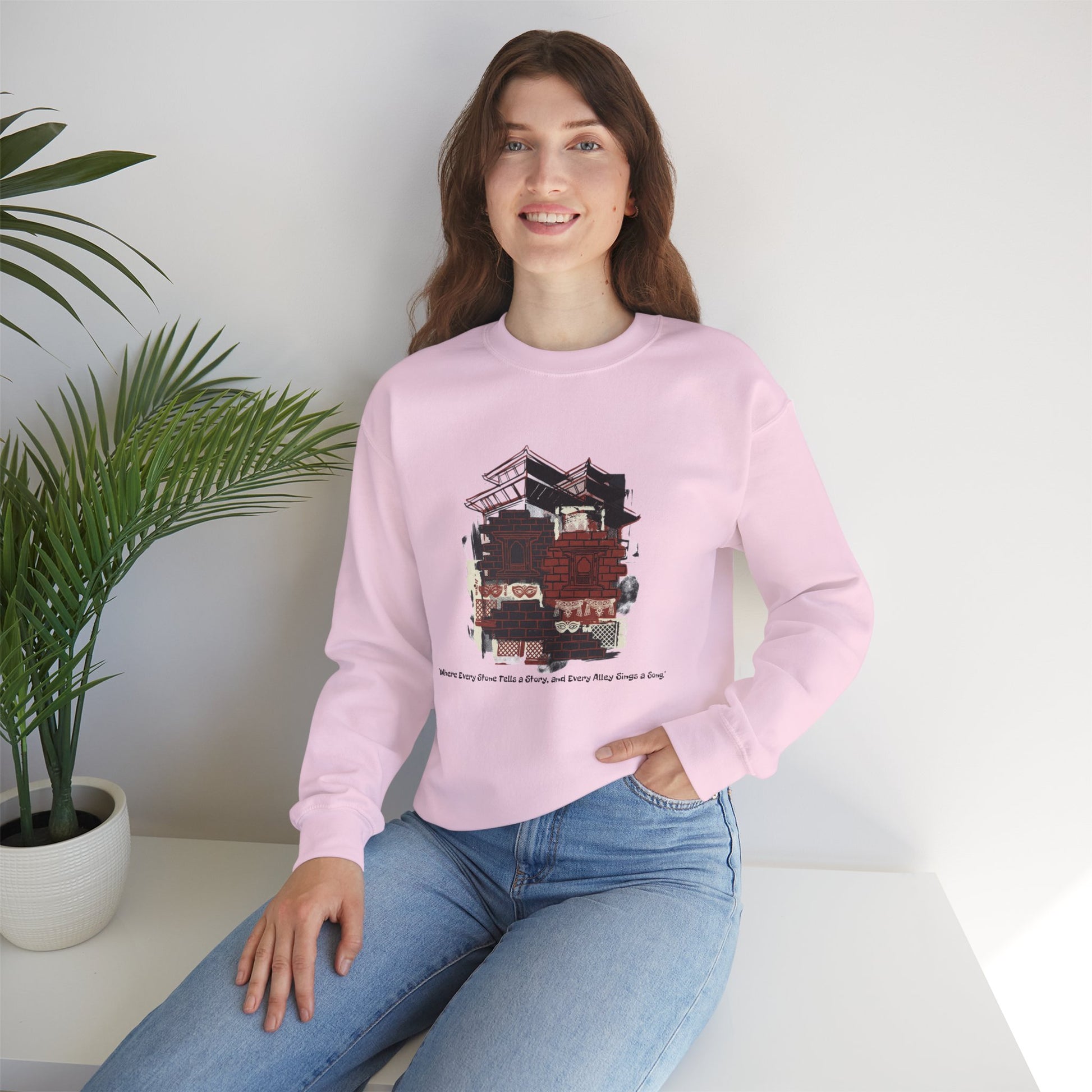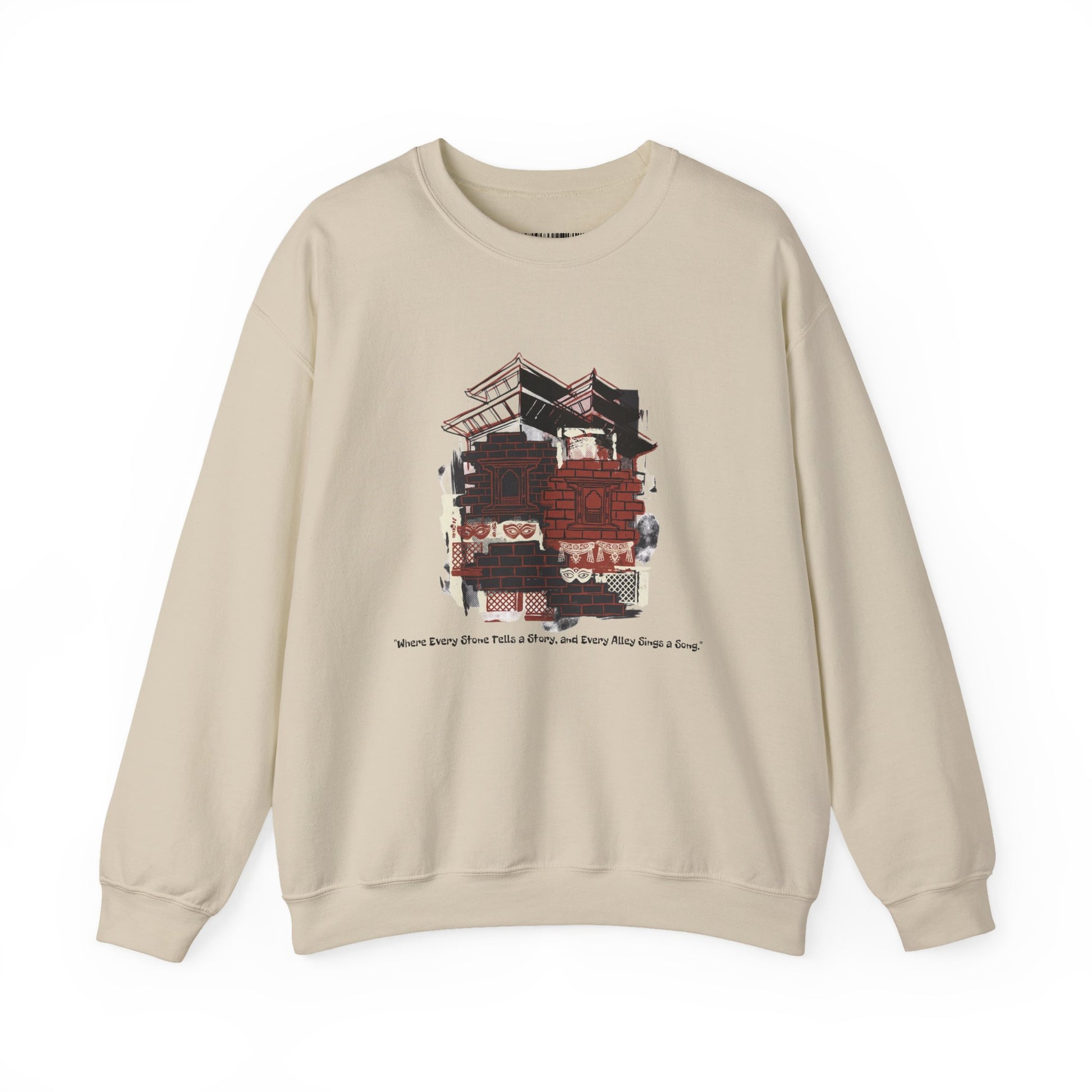 This soft, mid-weight crewneck brings quiet comfort to slow mornings and city wanderings. The vintage-inspired graphic — a layered collage of trucks, rooftops, and warm brick tones — reads like a memory stitched onto the chest. Wear it on cool walks, between coffee runs, or when you want an easy layer that feels like a familiar companion. The cut is relaxed without being boxy, and the tactile ribbing at the collar and cuffs keeps the shape after many wears. Subtle, well-made, and made with thoughtful materials, this sweatshirt settles into your routine rather than shouting for attention.