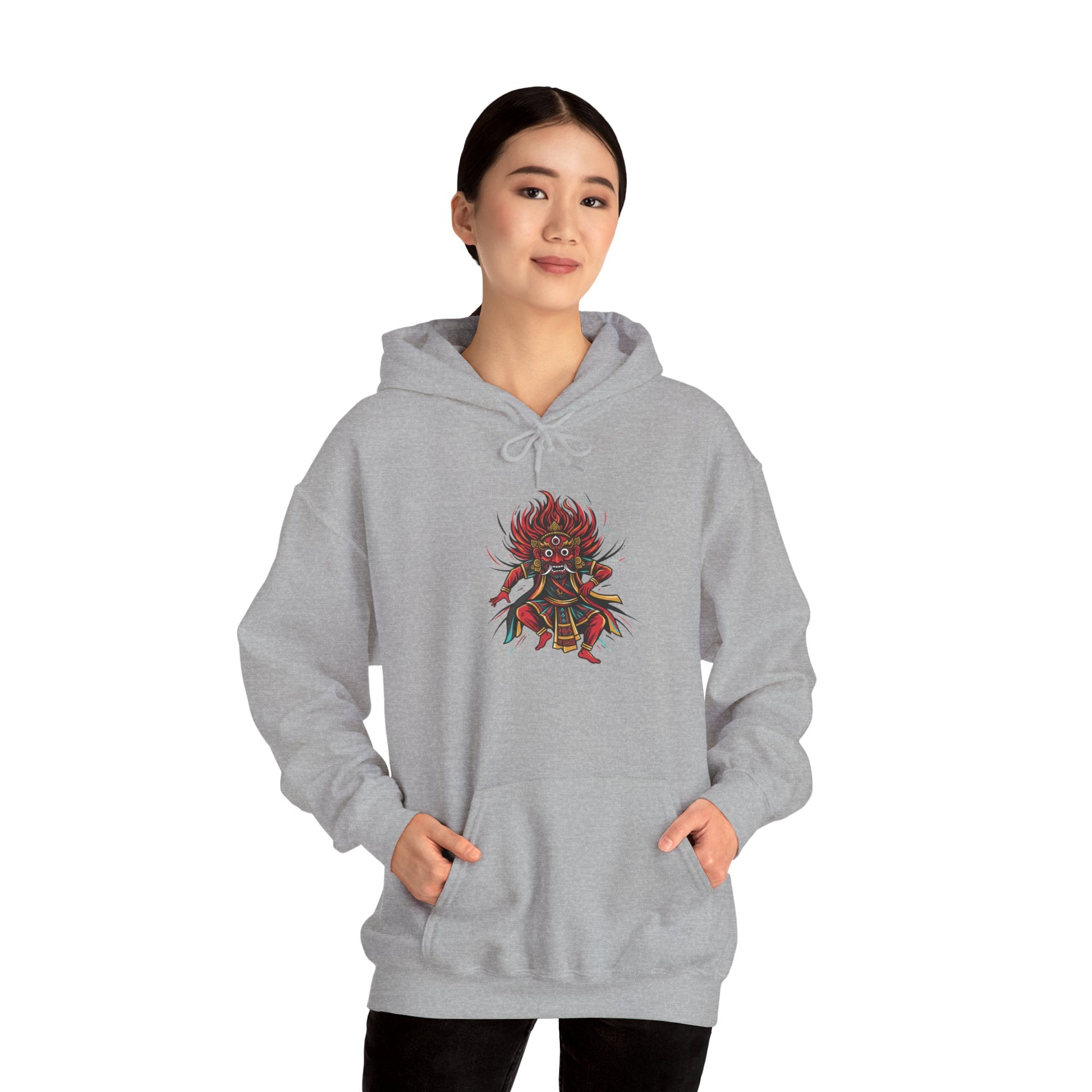 Demonic Oni Mask Hoodie — Japanese Demon Illustration Sweatshirt