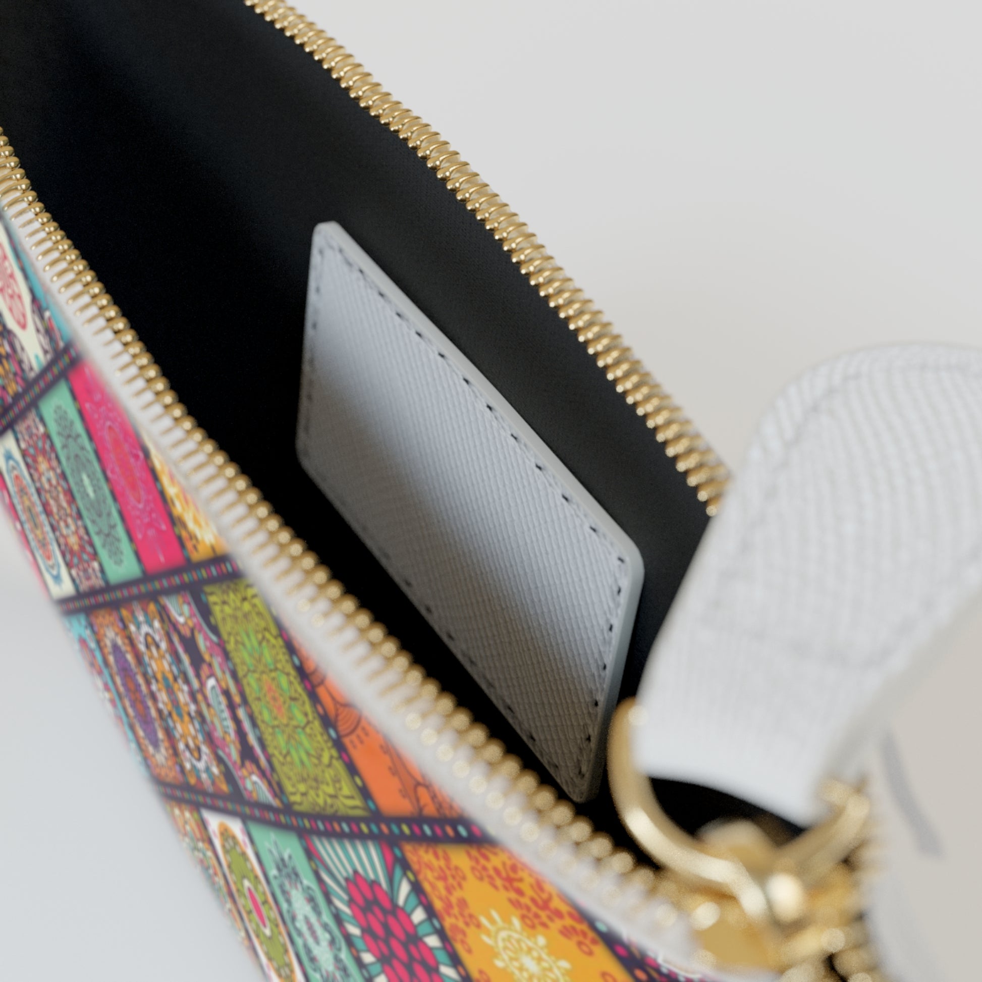 Designed to be chic and highly portable, this mini personalized clutch bag is made for the fashionista on the go. It can hold everyday essentials such as a phone, a wallet, and keys. It features a zip fastener and it is made of vegan, cruelty-free leather that can accommodate your custom designs on both sides.