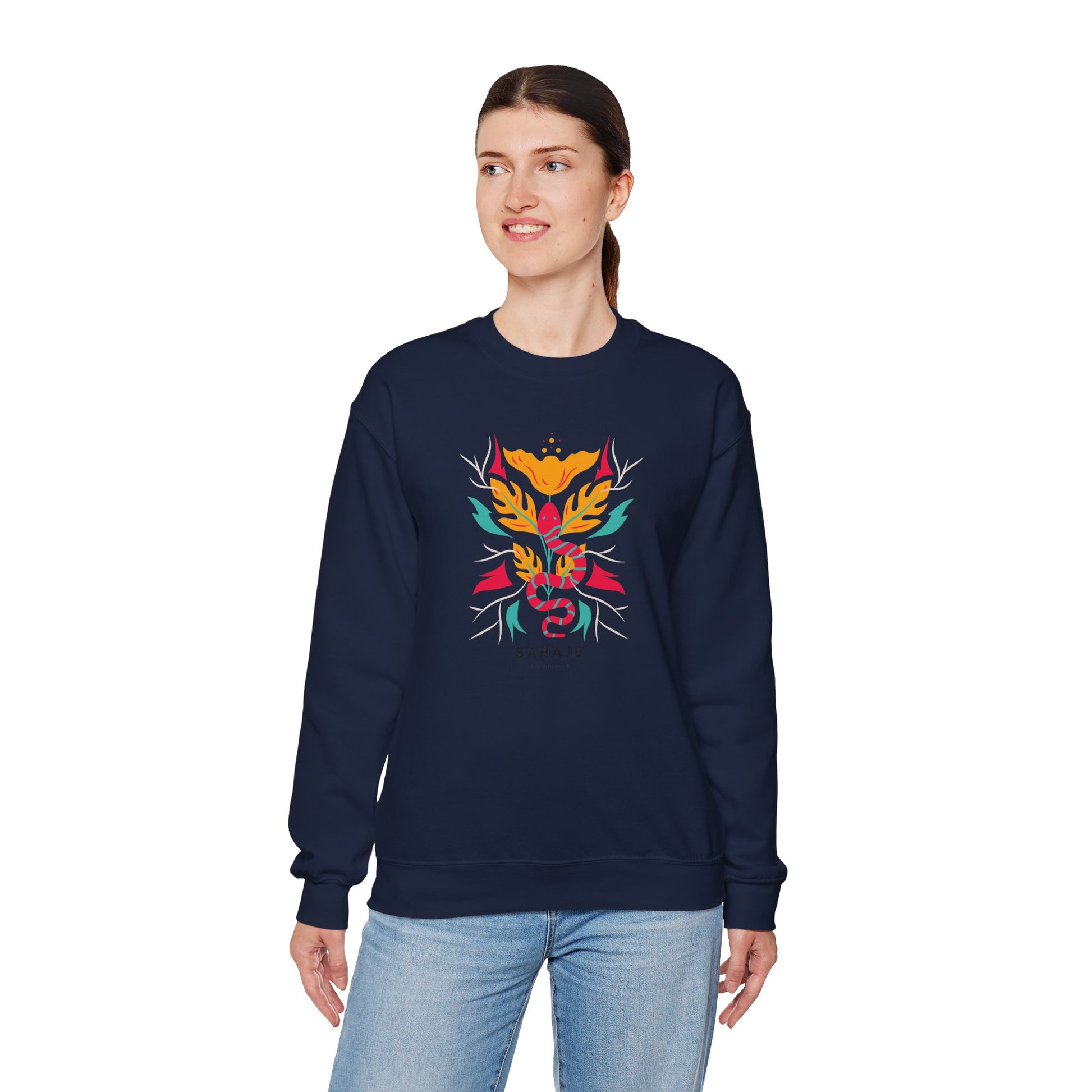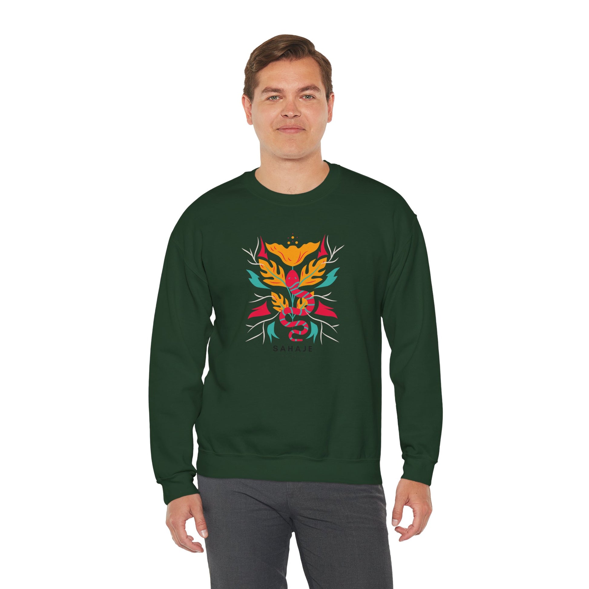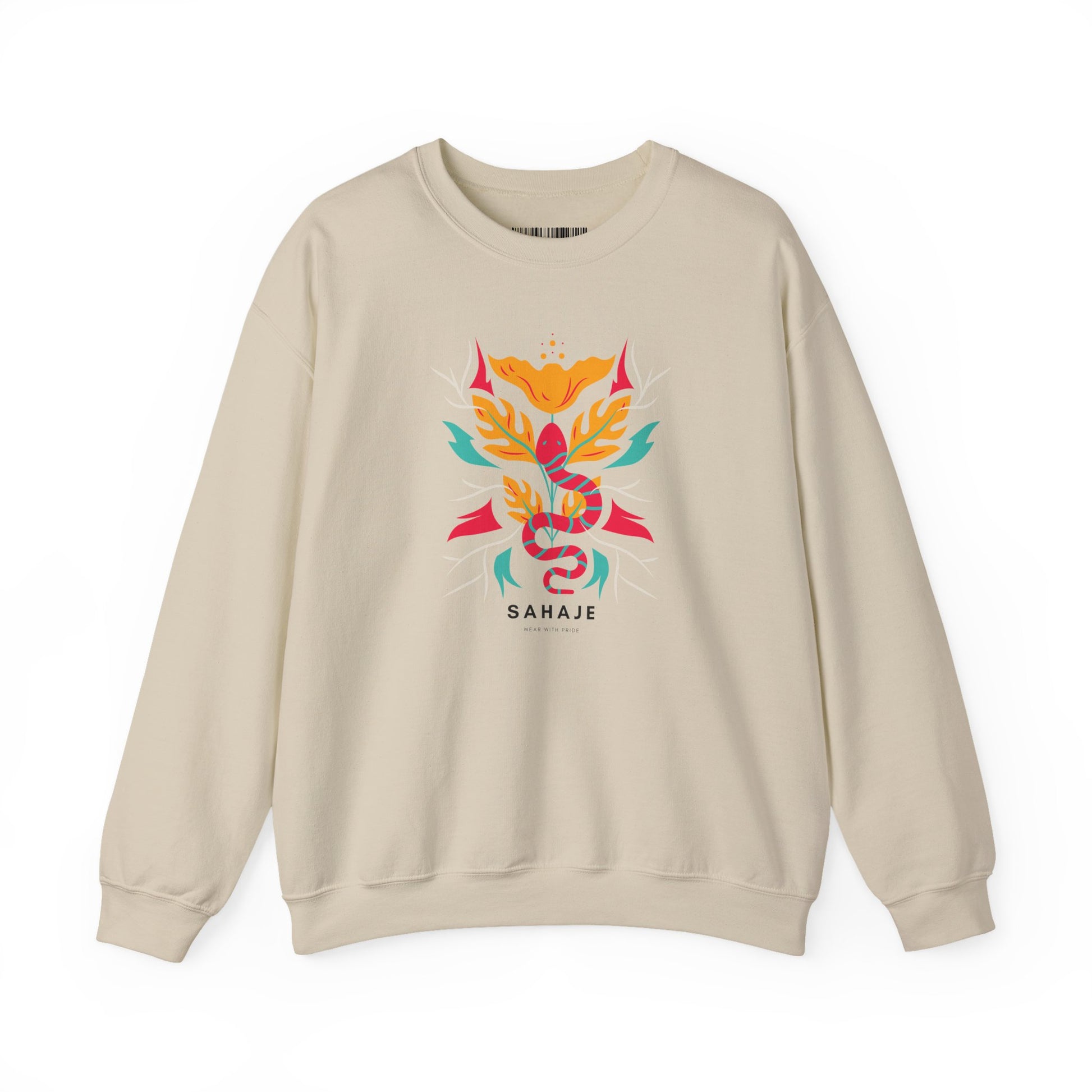 Sahajé Floral Snake Crewneck Sweatshirt — Colorful Botanical Serpent Graphic